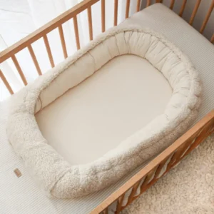 - Le cocon pour rassurer bébé dès la naissance avec son tissu teddy bio, ultra-tendance !